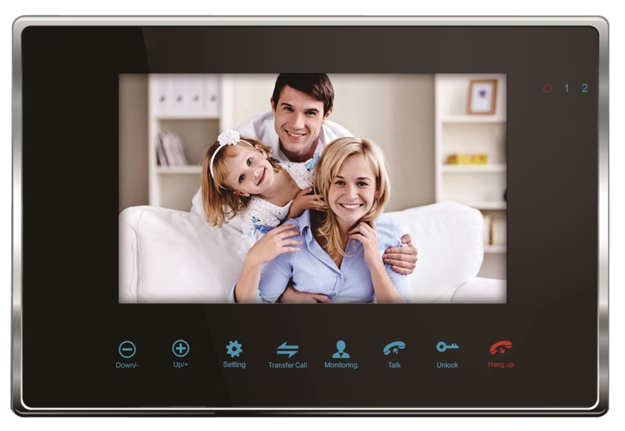 2Мп AHD видеодомофон оборудован дисплеем с диагональю 7 дюймов. Управление производится при помощи сенсорных кнопок, доступны функции записи фото и видео, регулировки яркости, цвета и контрастности. Домофон поддерживает SD-карты, объемом до 128 Гб. К домофону возможно подключить до 2х AHD вызывных панелей и 2-х (CVBS/AHD/TVI/CVI) камер,.